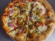 34. Diabelskapieczarki, salami, kiełbasa pepperoni, płatki chili, papryka jalapeno, papryka, cebula