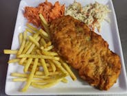 Filet z ananasem zapiekany seremziemniaki, zestaw surówek